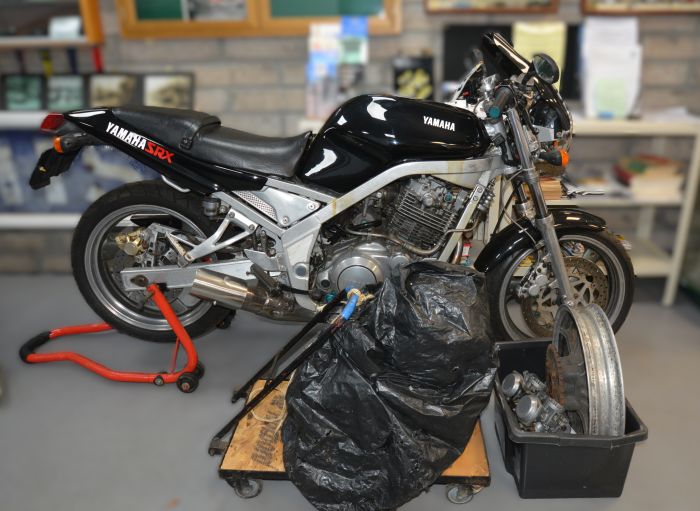 097 Tray of Assorted Classic/Vintage Motorcycle Parts, Boots etc